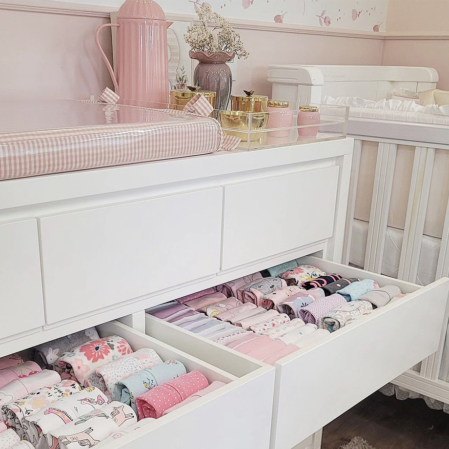 Organização do quartinho de seu bebê para que ele fique prontinho e o mais funcional possível, facilitando a rotina tão corrida deste momento.